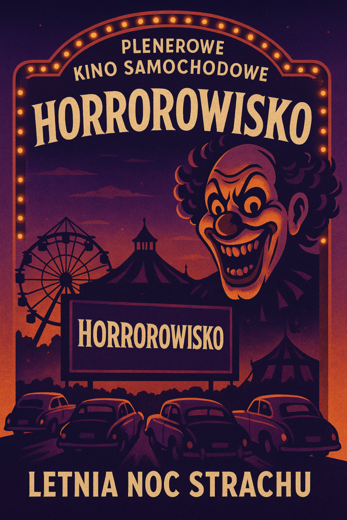 Gdy zapada zmrok, w naszym kinie budzą się filmowe koszmary… Przyjedź, jeśli masz odwagę! Noc pełna dreszczy, kultowych horrorów i lunaparkowych dziwactw czeka właśnie na Ciebie. Klauny, mgła i kino grozy – w tej scenerii każdy krzyk brzmi głośniej. Nie zapomnij o latarce… i o kimś, kto będzie trzymał Cię za rękę.